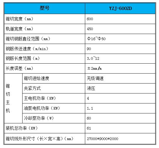 4.锯切主机生产效率高,可对原料钢筋的两端自动定尺齐头,锯口宽度达到600mm,一次锯切18根Φ20的螺纹钢在一分钟左右;锯切主机采用双立柱设计,升降平稳,锯切稳定;钢筋压紧采用液压油缸两侧压料,压力大,锯切过程中,钢筋不会转动,减少对锯条的损伤,钢筋切头均匀。