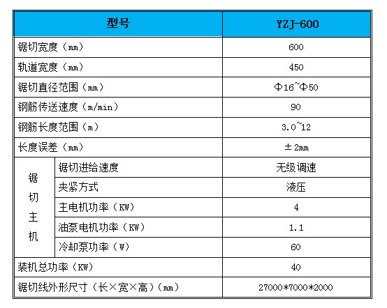 4.锯切主机生产效率高,可对原料钢筋的两端自动定尺齐头,锯口宽度达到600mm,一次锯切17根Φ20的螺纹钢在一分钟左