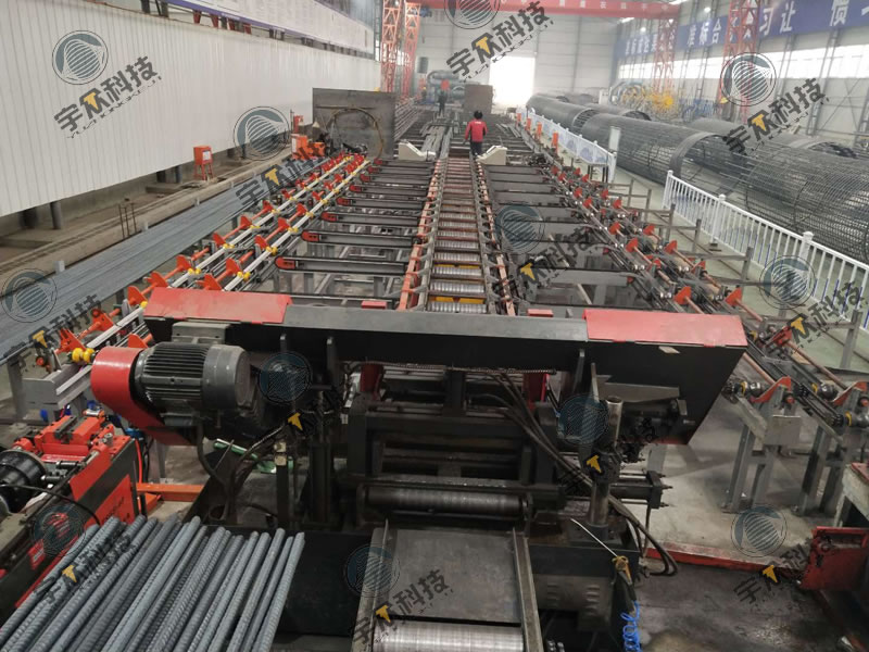 2.设备原料存储架采用大吨位存储,并与棒材自动上料机配合使用,上一个来回尚未结束时即可进行下一步配料,节省来回周期;全自动送料辊道,避免原料的二次搬运;钢筋输送、翻转、传递等由机械完成;钢筋输送滚采用 V 型耐磨辊进行,具有耐磨、减噪音、寿命长等特点;滚丝主机头实现了自动夹紧、送进、滚丝。